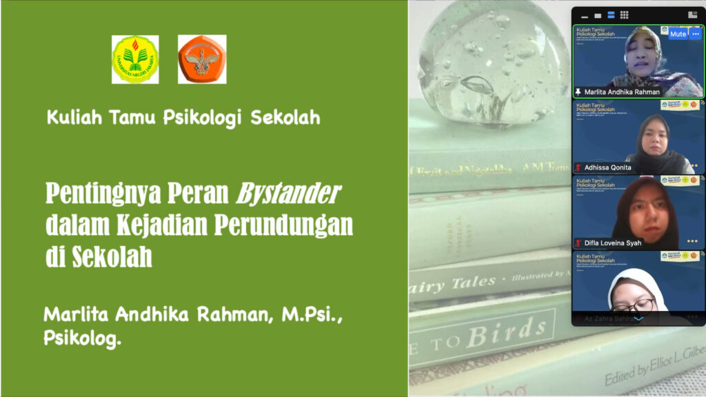 Kuliah tamu ini diselenggarakan secara online dengan tema yang diangkat dalam kegiatan ini yaitu “pentingnya peran bystander dalam kejadian perundungan di Sekolah”.