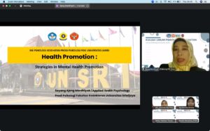 Ia juga membagikan pengalaman dari Program Studi Psikologi Universitas Sriwijaya dalam menjalankan program agent of change, yang bertujuan menjadikan mahasiswa sebagai pelopor dalam menciptakan perubahan perilaku dan budaya sadar kesehatan mental di lingkungan kampus.